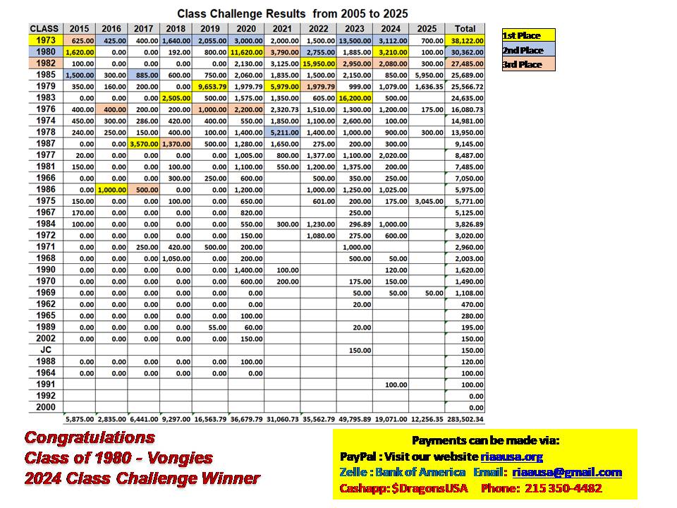 Class Challenge Posted on July 18, 2021August 2, 2025 by Nap Outland Please feel free to contribute any amount towards your class challenge. You can view the current score below. Amount: Class Challenge quantity Donate Your Notes: Categories: A La Carte Items, Gift Catalog Description Description Related projects Scholarship Donation Donate Athletics Donate Membership Dues $60.00 Add to cart Hall of Fame $20.00 – $50.00Price range: $20.00 through $50.00 Select options This product has multiple variants. The options may be chosen on the product page Published by Nap Outland View all posts by Nap Outland